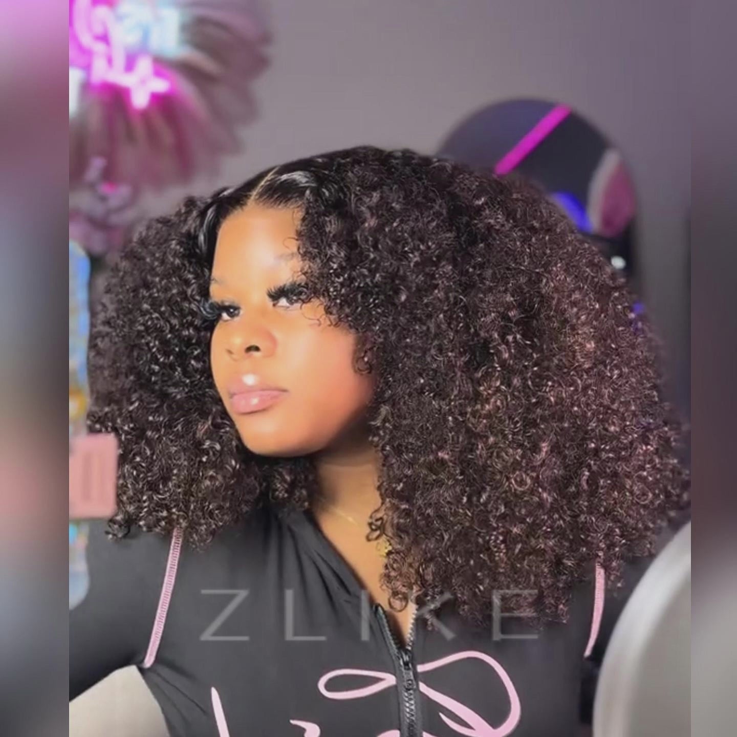 Zlike Afro Curly Wear Go Glueless Wig Pre-cut 7x5 Lace With Bleached Knots 100% Human Hair