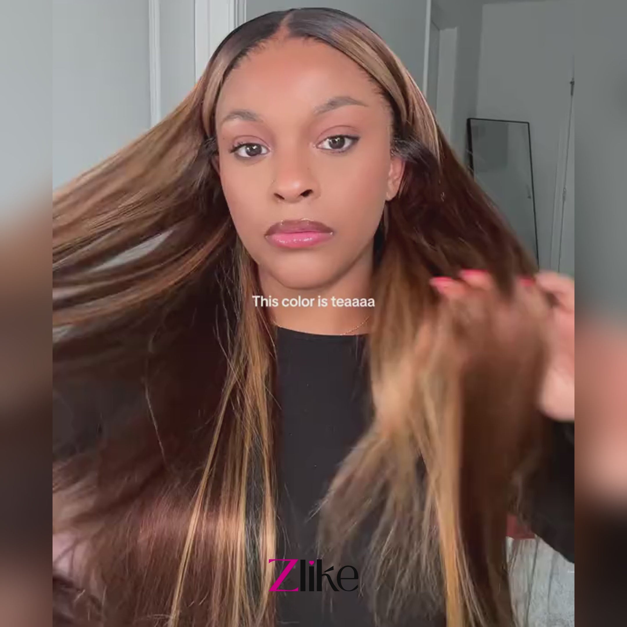 Zlike Black Roots Body Wave 4/27 Ombre Highlight 13x6 Transparent Lace Front Human Hair Wigs
