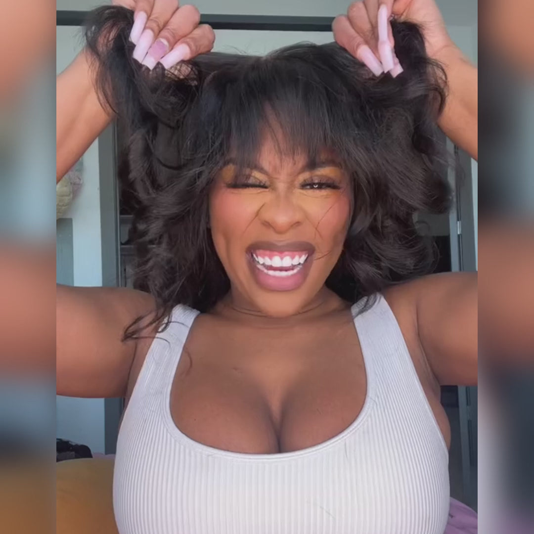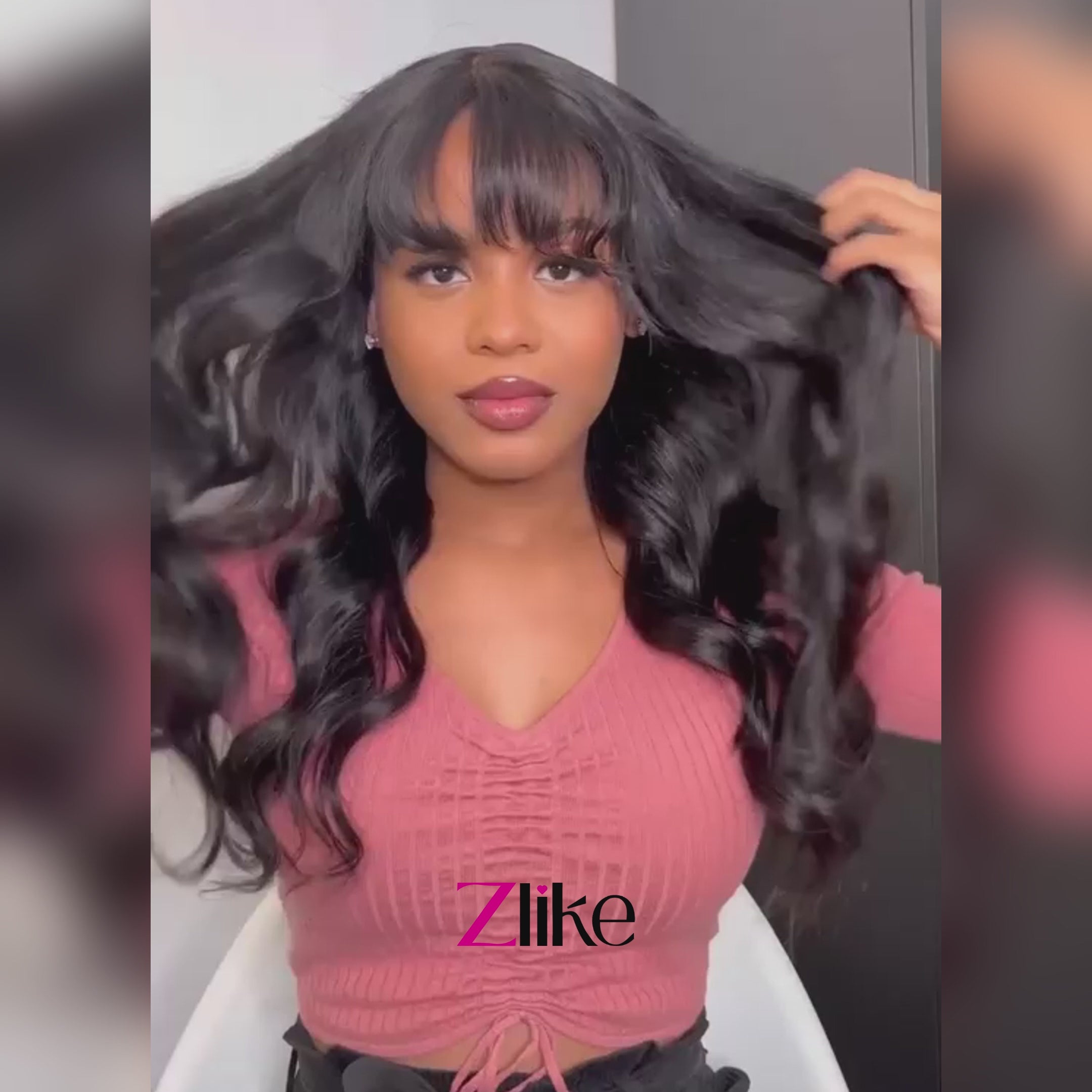 Put On And Go Glueless Body Wave With Bangs Top Lace Wig 100% Human Hair Wigs