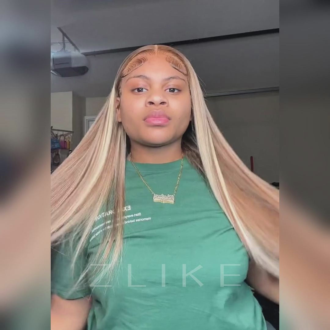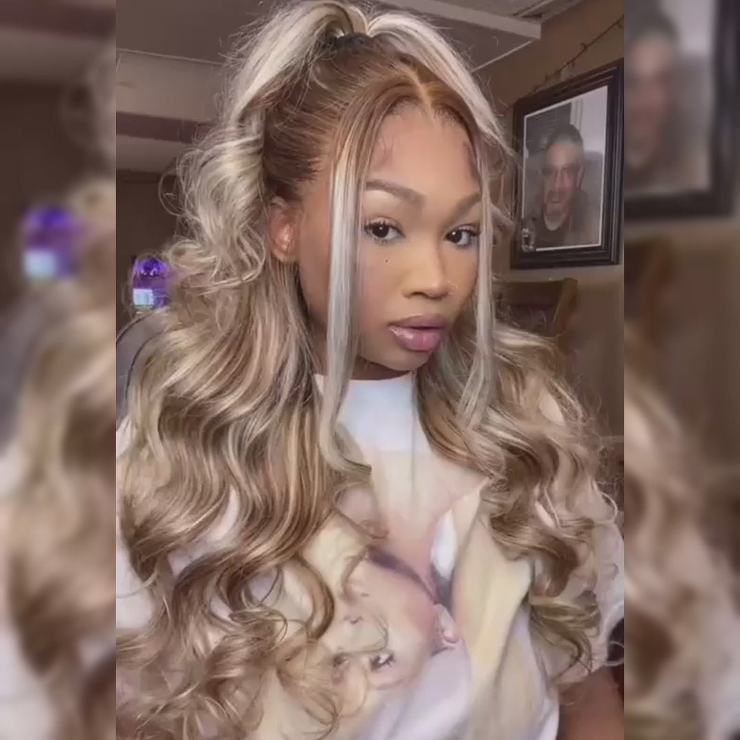 P4/613 Blonde Highlight Lace Front Wig 180% Density Human Hair Wigs