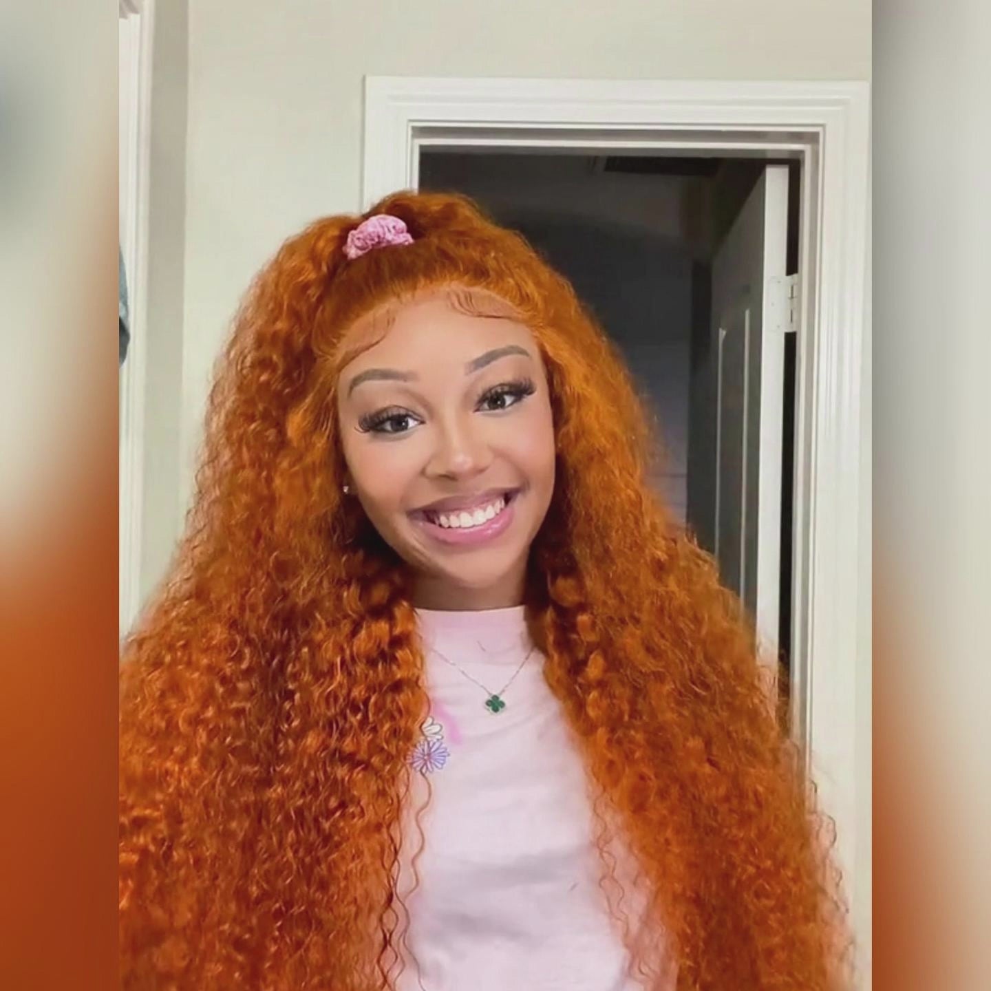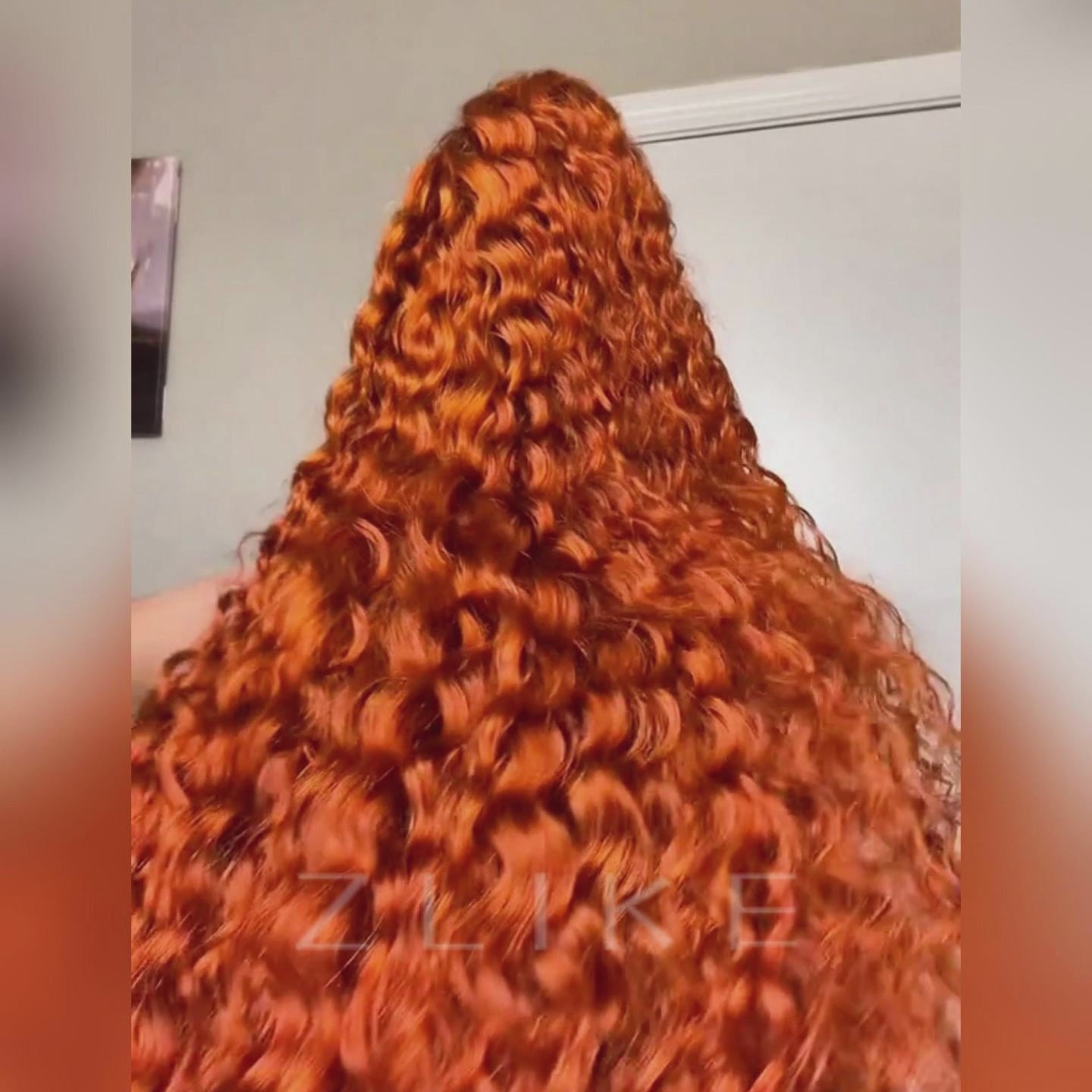 Zlike Ginger Water Wave Wigs 13x6 Transparent Lace Front Wigs 100% Human Hair Colored Wigs With Pre Plucked Hairline