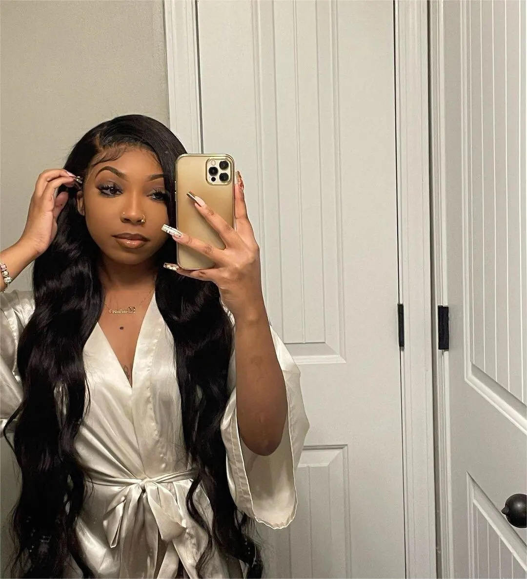 Body Wave 13x6 HD Lace Wigs 180% Density Natural Black Human Hair Wigs Free Part