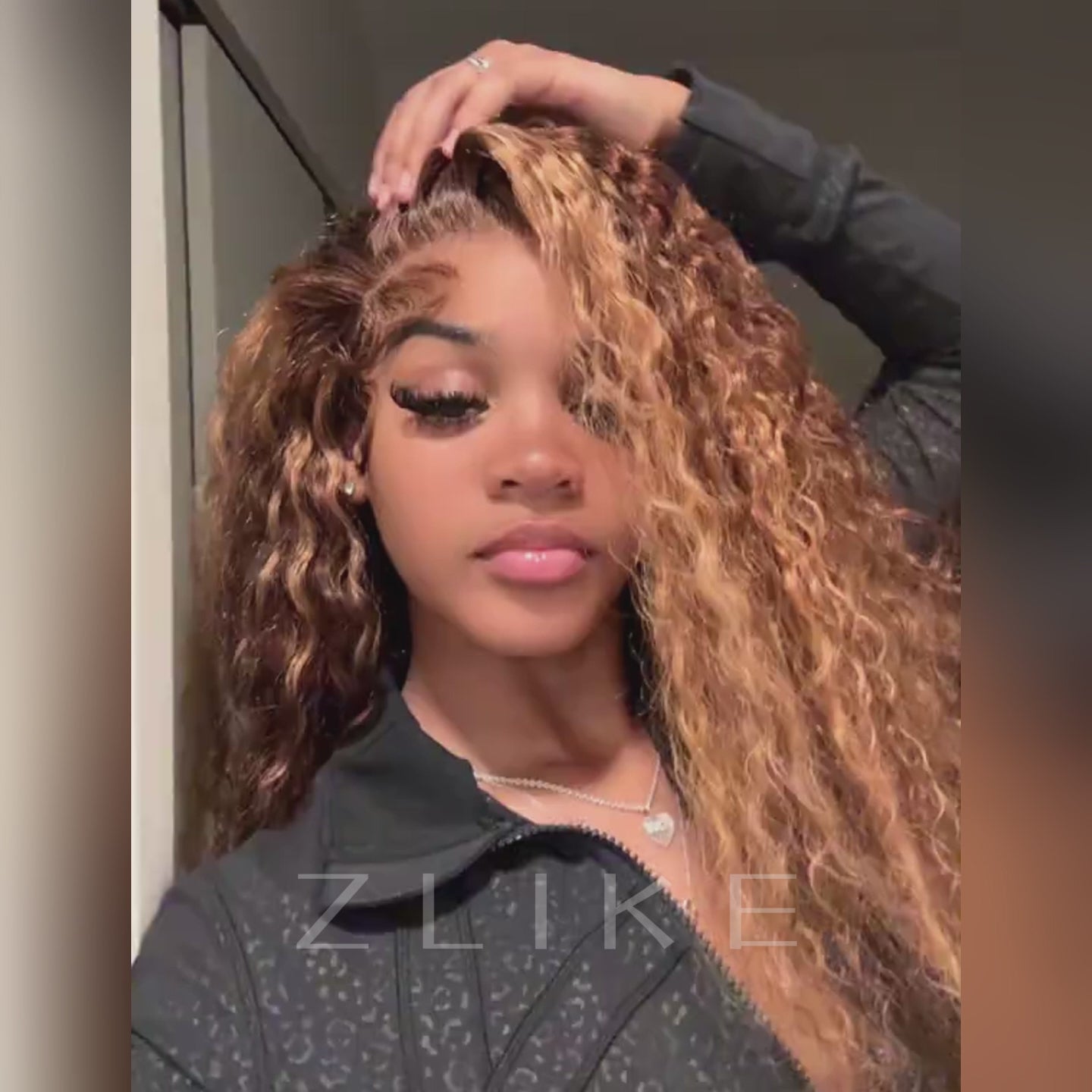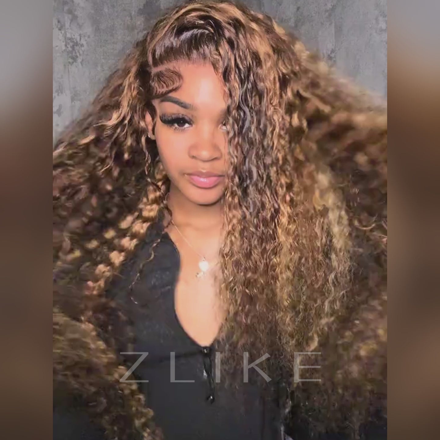 Zlike Honey Blonde Highlight Lace Front Wigs Water Wave Pre Plucked Human Hair Wigs