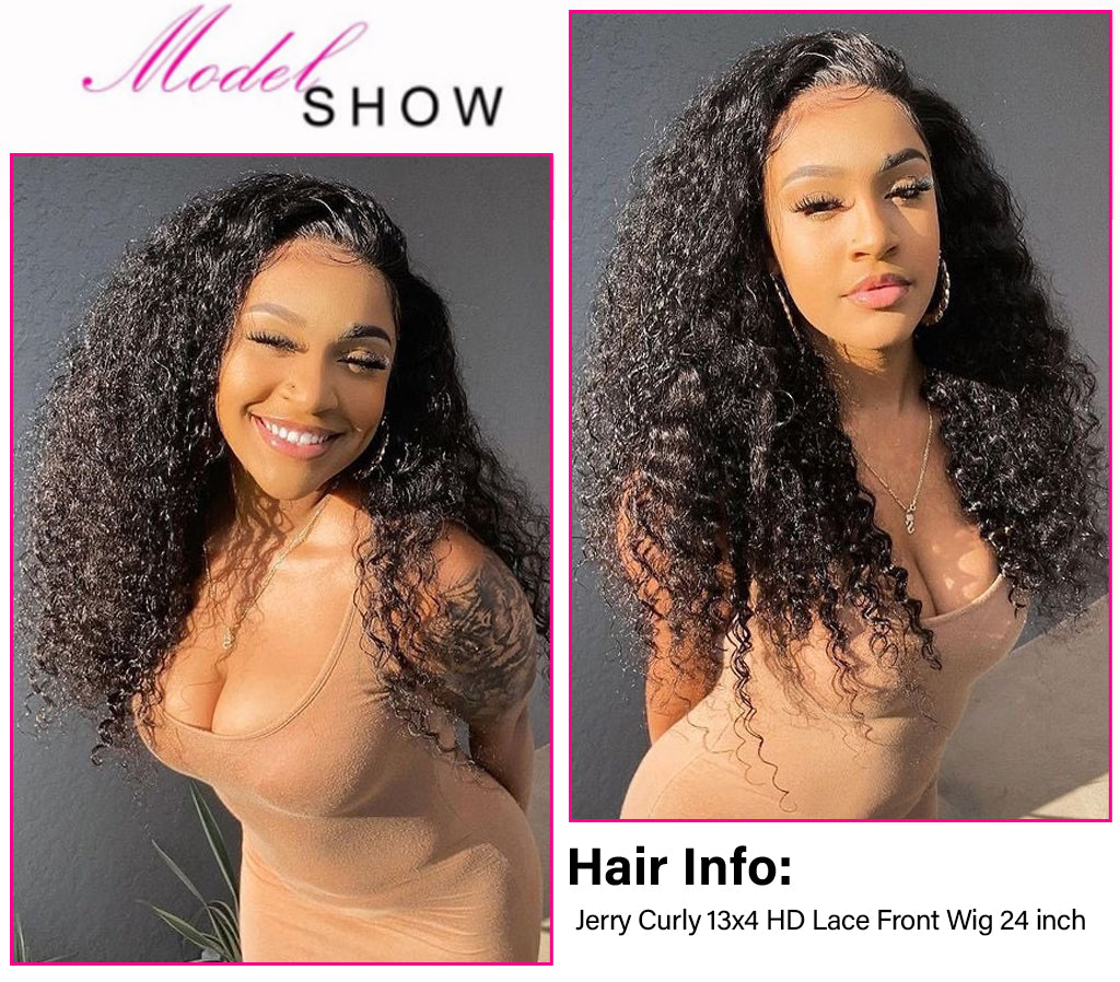 Jerry Curly Natural Black Color Wig 13x4 Invisible HD Lace Front Human Hair Wigs