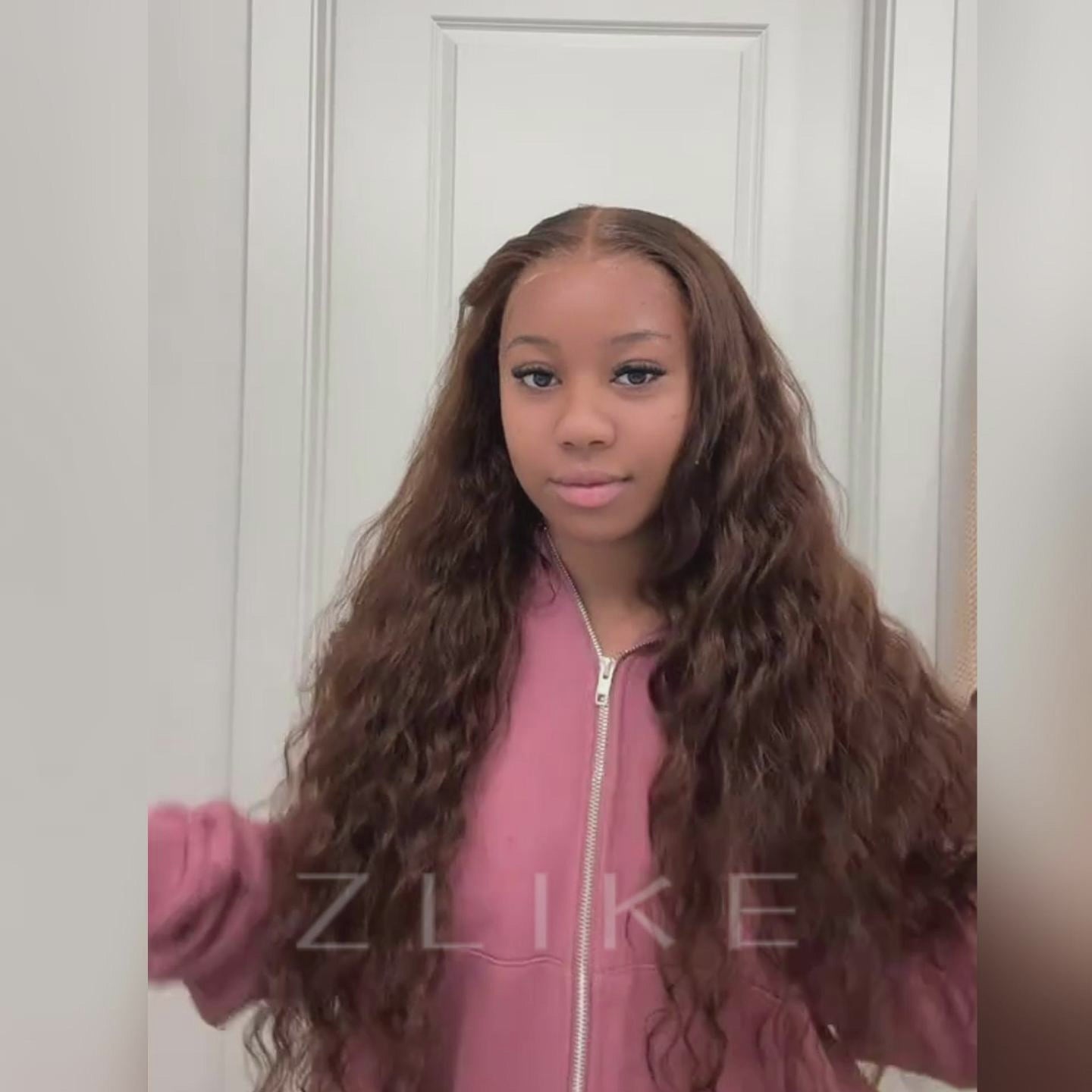 Zlike Luxury Bouncy Chocolate Brown Bohemian Curl Wigs 300% Density Super Double Drawn Virgin Human Hair Wigs Transparent Lace