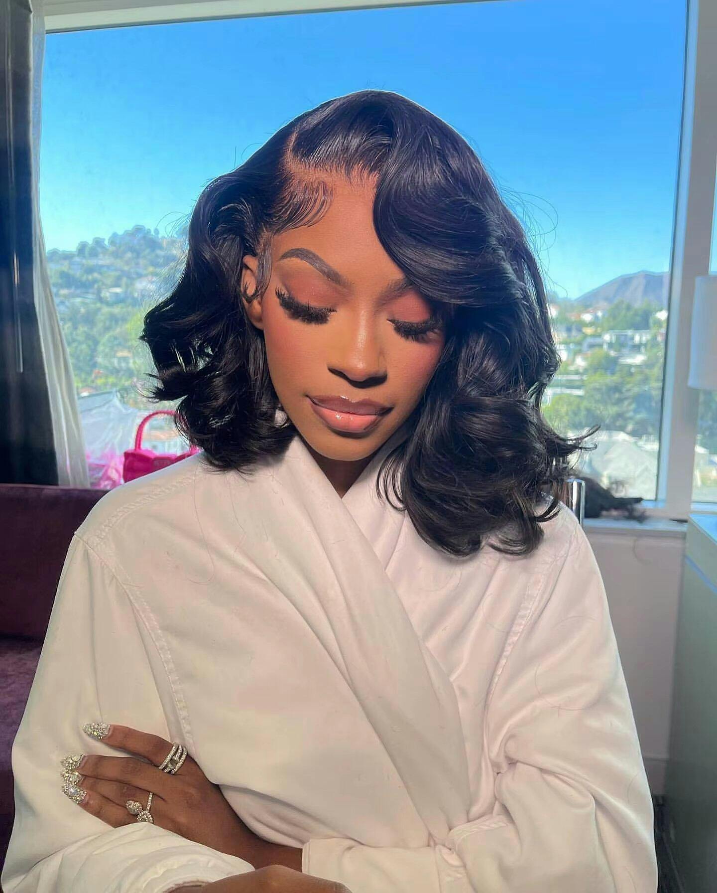 Zlike Pre-Styled Body Wave Short Bob Wigs 100% Human Hair Transparent Glueless Lace Wigs