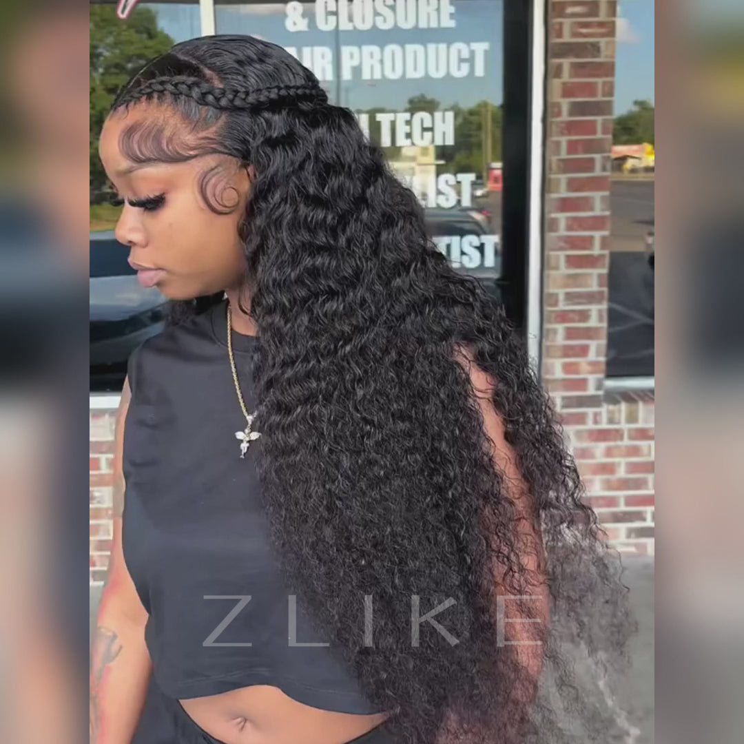 Zlike Pull Go 13x6 Pre Cut Lace Front Wigs Deep Wave Natural Black Human Hair Pull To Wear Wigs