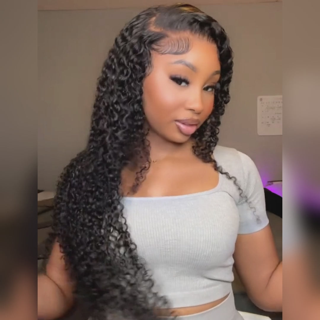 Zlike Pull Go Kinky Curly Natural Black 13x6 Pre Cut Lace Front Wigs Human Hair Pull To Wear Wigs