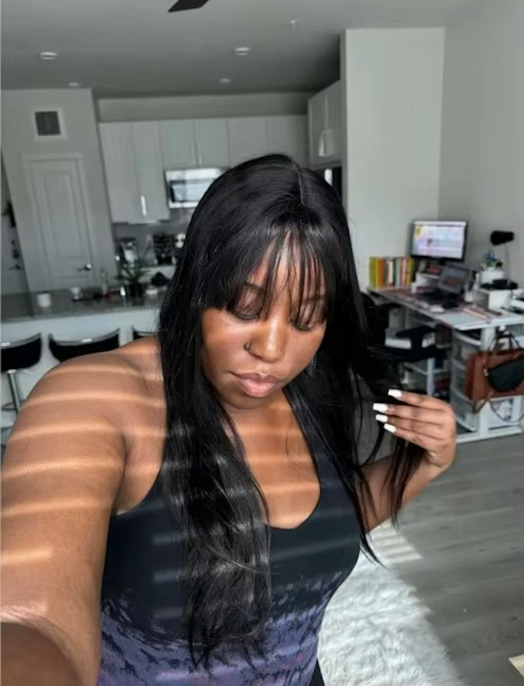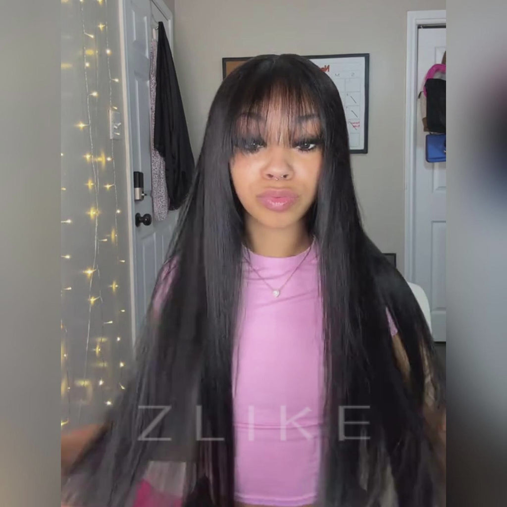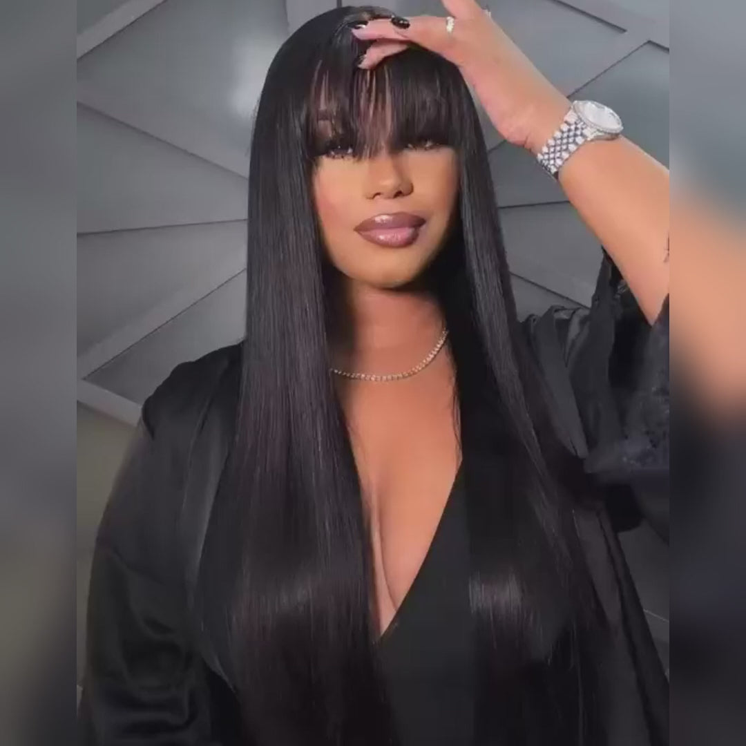 Straight Wig With Bangs Natural Color Straight Glueless Top Lace Human Hair Wigs